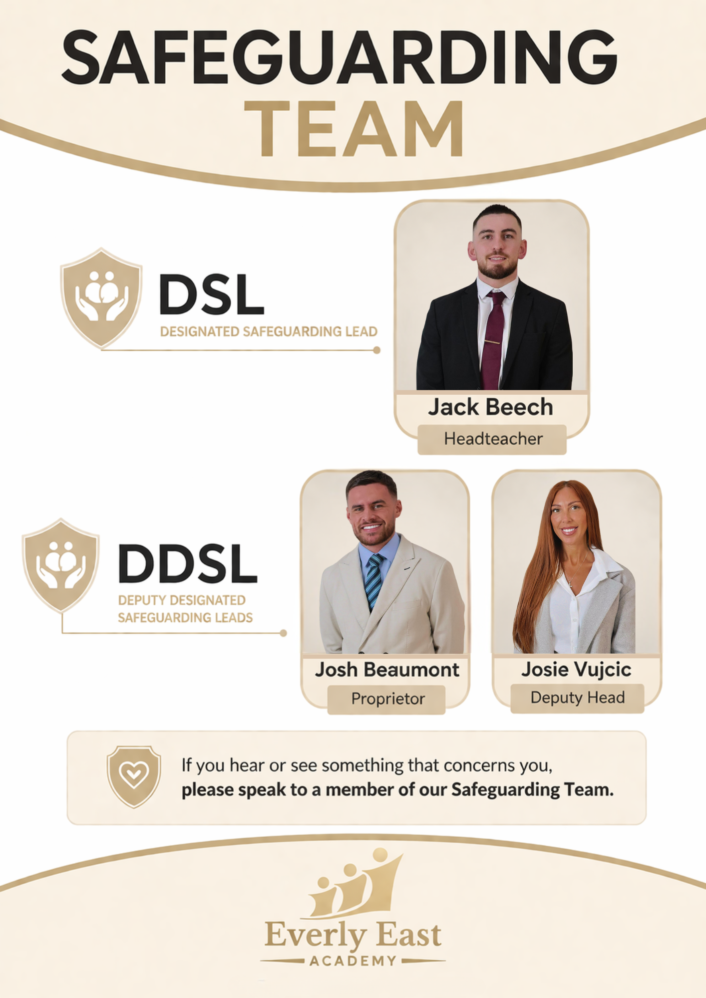 At Everly East Academy, we are proud to provide a safe, inclusive and nurturing environment where children are not only protected from harm, but are supported to thrive, achieve and flourish. Our commitment to safeguarding is unwavering, because every child deserves to feel safe, valued and cared for every single day.